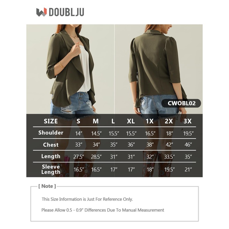 - #CWOBL02 - Womens Lightweight Thin 3/4 Sleeve Open Front Blazer With Plus Size