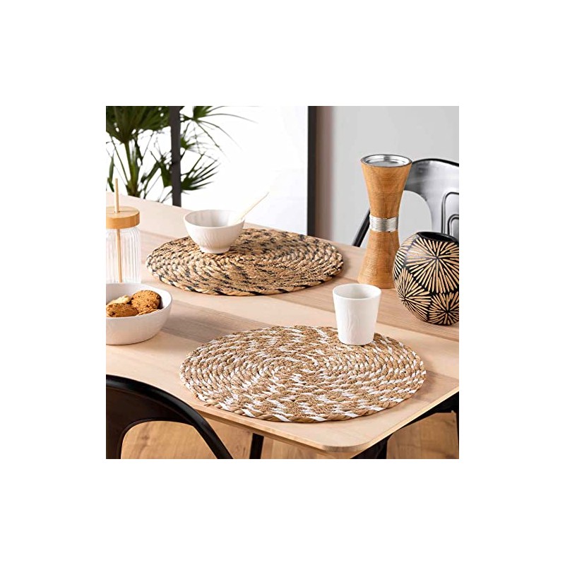 Douceur d'Intérieur Nala Place Mat Diameter 38 cm White Straw Bangle and Polypropylene