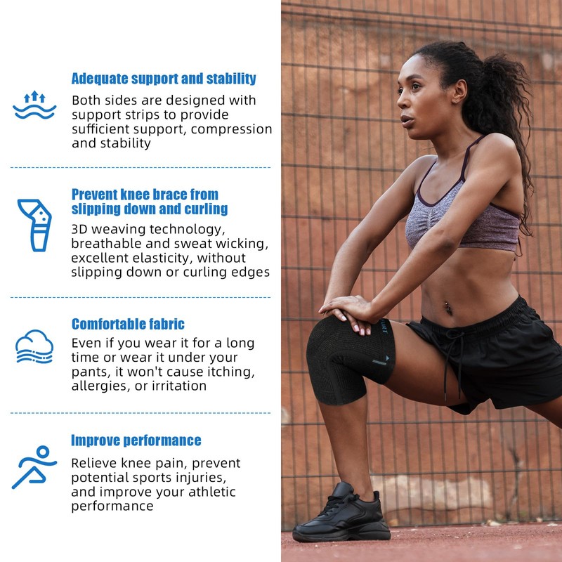 - COMFORTABLE & HIGHLY ELASTIC FABRIC: The knee braces are made of high - quality fabric and adopt 3D knitting technology. The knee sleeve is comfortable, breathable and sweat - wicking. Whether you are stretching or twisting, you can freely extend your knees. You don't need to worry about the knee sleeves slipping down or curling up. It is suitable for 24 - hour wear throughout the day