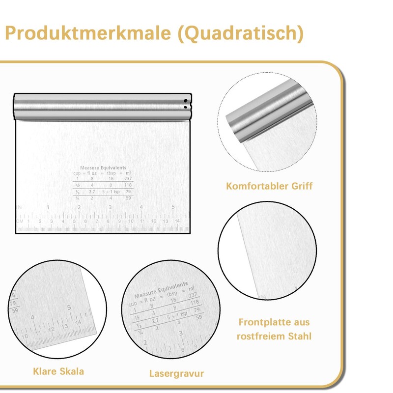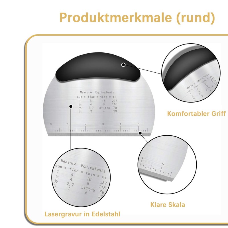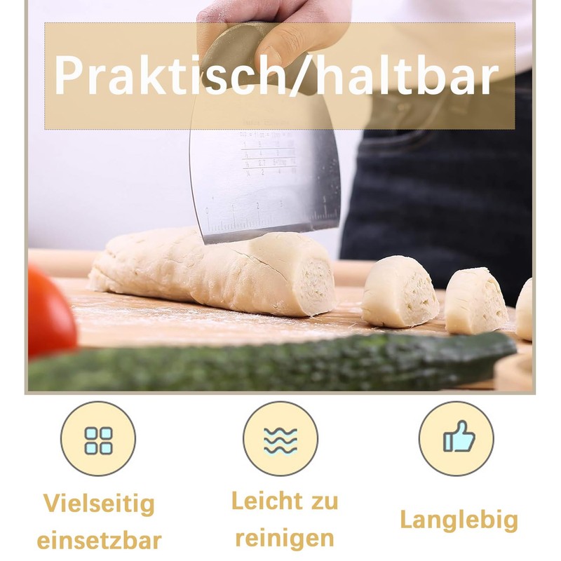 - Graduated line: dough scraper uses laser-engraved graduated lines, refuses to use electricity to corrode water, not easy to rust, convenient to measure the dough scale when cutting, more hygienic, safer and more accurate.