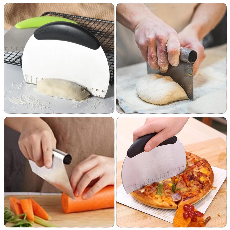 - Ergonomic handle: stainless steel dough cutter's non-slip rubber handle is comfortable to hold, and the curved design makes it easier to cut evenly.