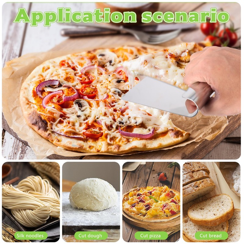 - Multi-purpose: An ideal helper for home kitchens/restaurants/barbecues/camping/baking, suitable for cutting dough, pizza, cakes, bread, salads, vegetables, etc., or for transporting and serving food