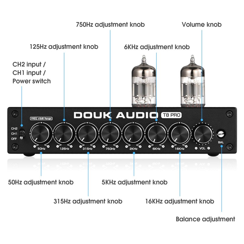 Douk Audio HiFi Vacuum Tube 7-Band EQ Preamp Equalizer XLR Pre-Amplifier Home (T8 PRO)