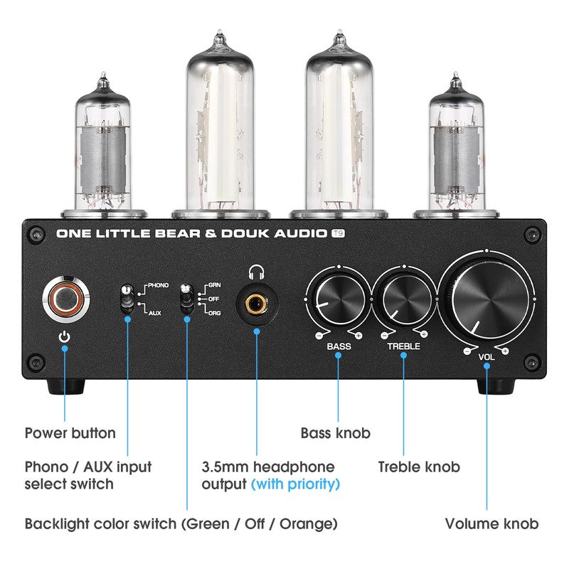 - Authentic Vintage Sound Experience: Elevate your music listening with the Douk Audio T9, featuring two 6E2 vacuum tubes that offer a dynamic signal level display through the magic eye and two 6A2 tubes known for their warm, natural, and full-bodied sound. Enjoy the pure and bright color display with adjustable backlights in cold green or warm orange for an immersive audiovisual experience.