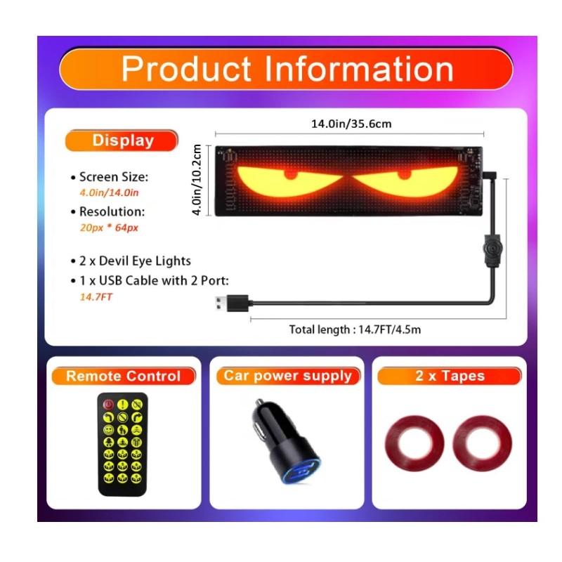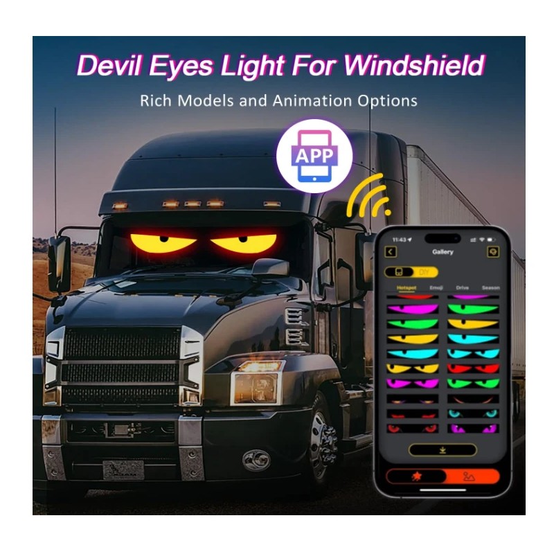 - 【Irresistible Visual Appeal】Give your car a bold and dynamic look with this set of LED devil eye lights designed specifically for windshields. Whether you're cruising through the city or lighting up the night at an event, these dual LED displays make your vehicle truly stand out from the crowd