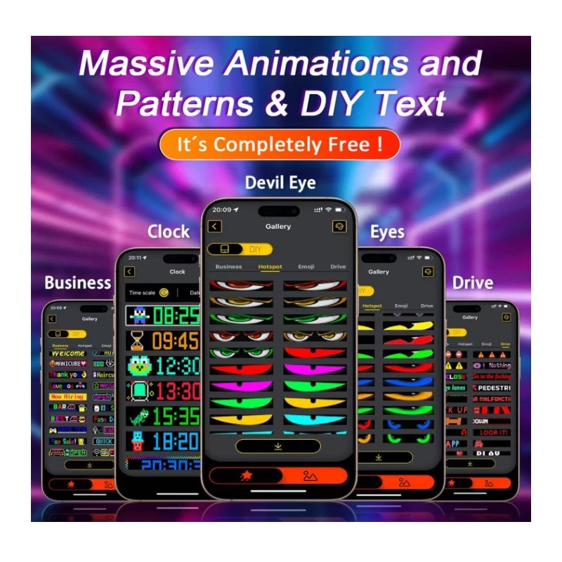 - 【Customizable Flexible LED Display】Unleash your creativity with our dedicated mobile APP! These eyes for car windshield support text, doodles, patterns, animations, and even design your own logo. Turn your vehicle into a moving piece of digital art with just a few taps
