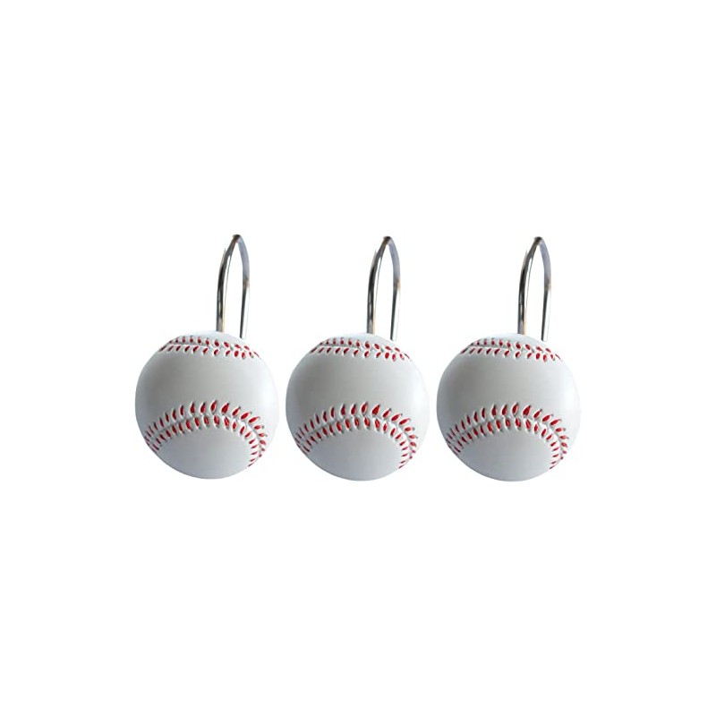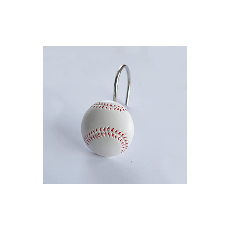 Doupoo Home Decorative Basketball Shower Curtain Hooks Set of 12 (Baseball)