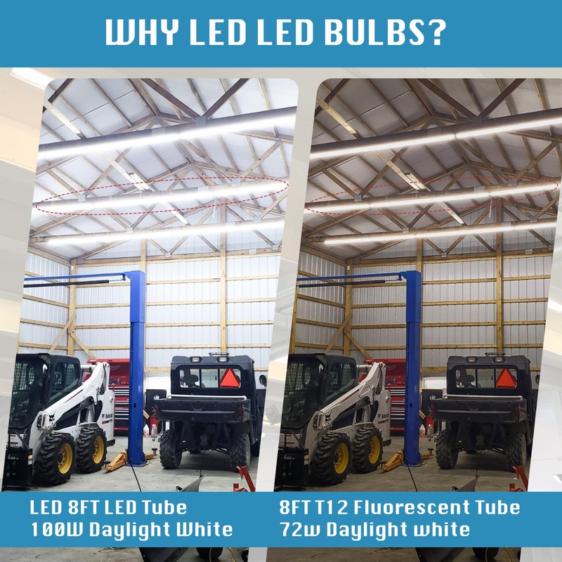 - Easy Installation - These 8ft foot led lights are easily fitted to replace traditional T8 T10 T12 fluorescent bulbs. Just need to bypass or remove the starter and ballast before installation