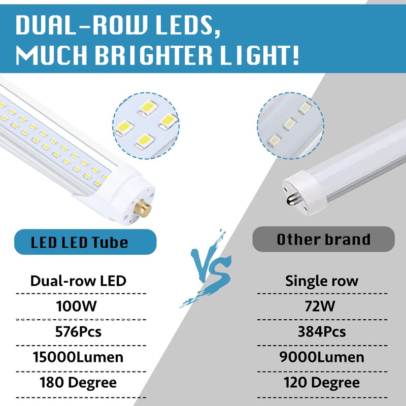 - 2 Row LED Design - Wider LED board has excellent heat dissipation and longer lifespan. It solves the trouble of ballast buzzing, light flickering. No mercury or hazardous materials, no UV or IR Radiation