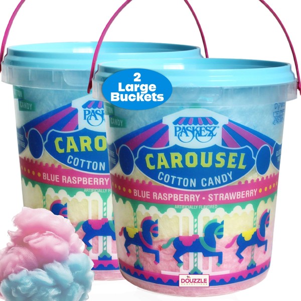 DOUzzle Large Carousel Cotton Candy - Pink & Blue Spun Floss Sugar Retro Candy, Raspberry & Strawberry Flavor (2 Pack) Carnival Snack, Party Favor, Goodie Bag & Pinata Filler - Kosher