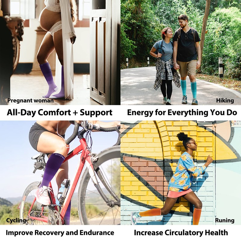 • Energy for everything you do - these are the best compression socks for athletes, nurses, doctors, outdoor enthusiasts, pregnant women, cyclists, travellers, truck drivers - who sit or stand for a long time. Recover faster from running, training, cycling, basketball, tennis, gym, hiking and other sports activities.