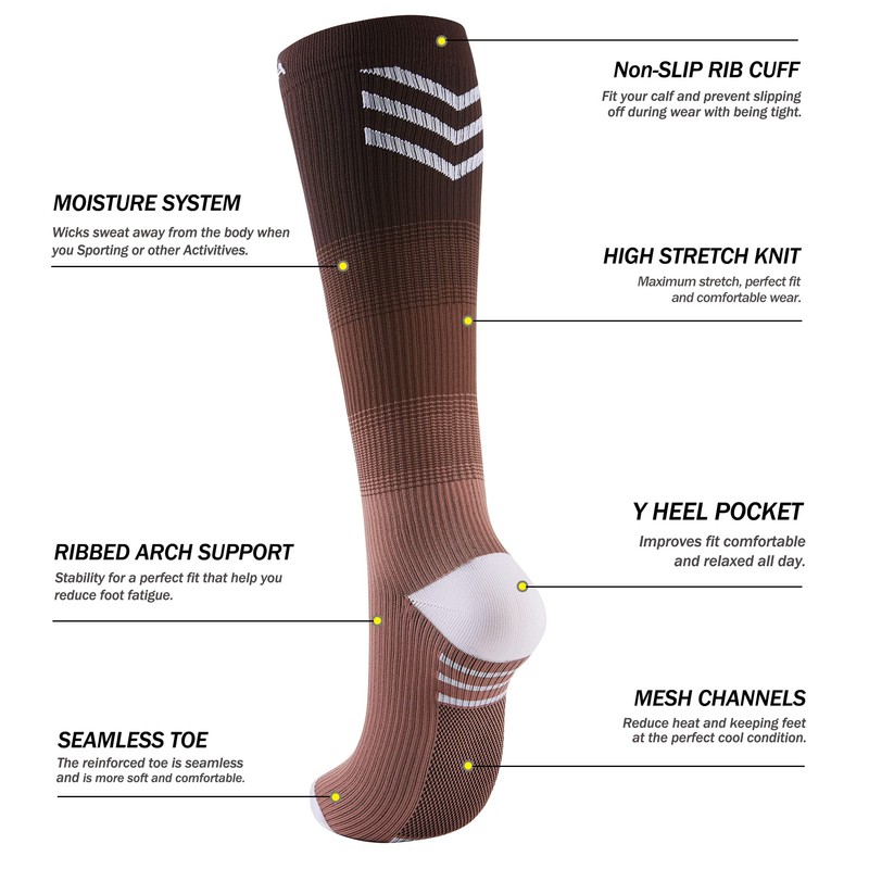 • Increase support for your feet and circulation - DOVAVA compression socks reduce swelling and fatigue, help increase circulation, maintain an optimal temperature for your feet, and allow the reduction of cramps and soreness. Helps prevent varicose veins.