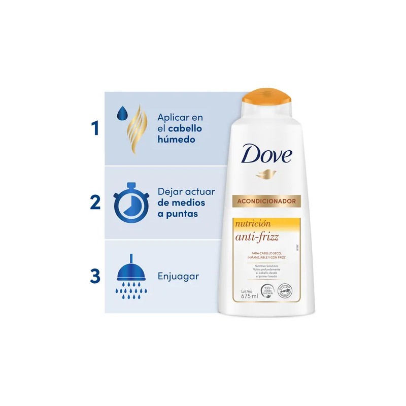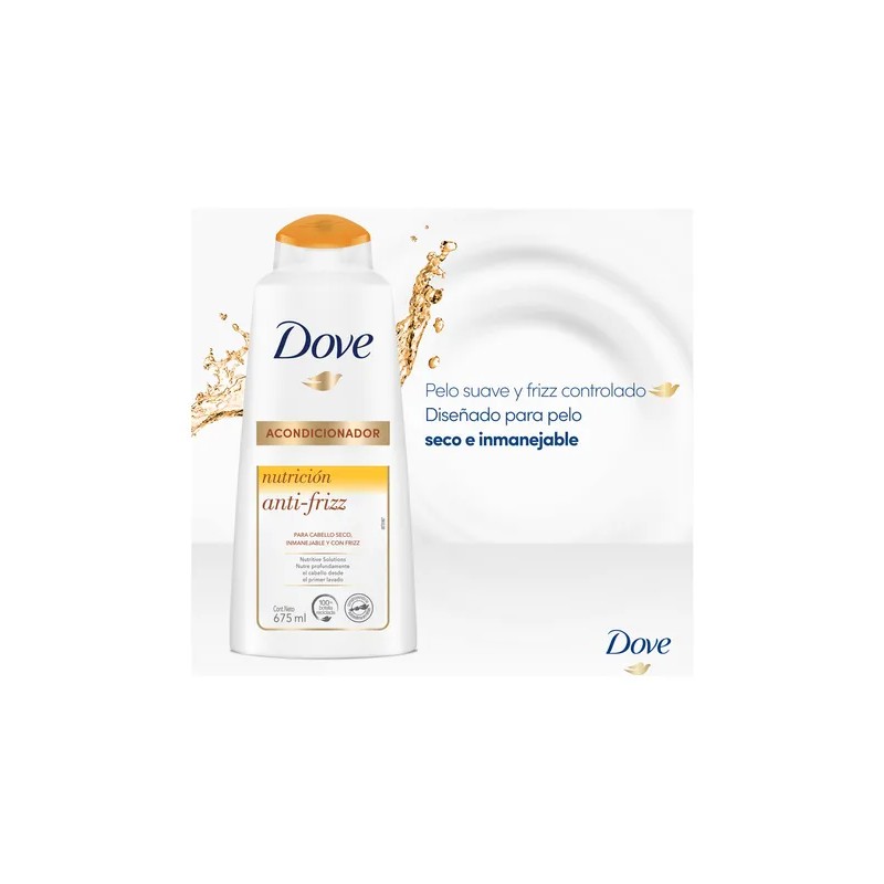 DOVE Acondicionador Dove Nutrición Anti-Frizz para el cuidado del cabello seco, inmanejable y con frizz, nutrición profunda desde el primer lavado 675 ml