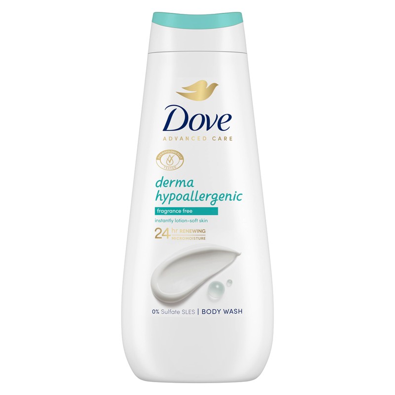 - 24-HOUR CARE, NOW FROM YOUR SHOWER: Dove Advanced Care Hypoallergenic Body Wash gently cleanses and deeply moisturizes the skin, leaving it replenished and lotion-soft for 24 hours.