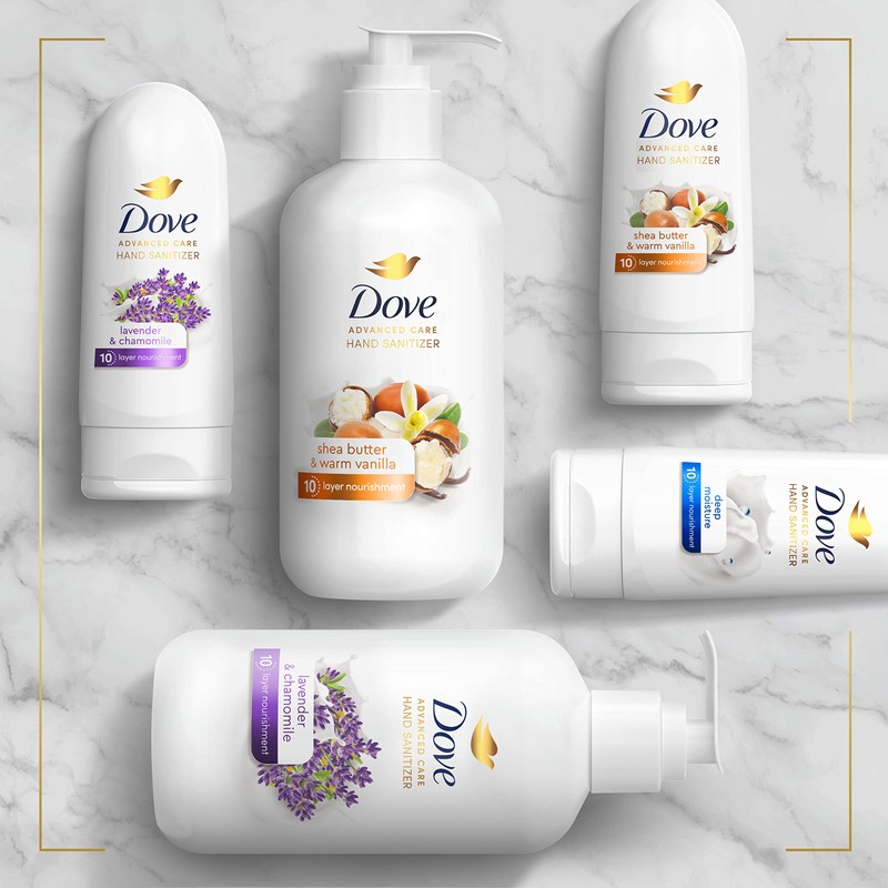 - THOUGHTFULLY MADE: Our Advanced Care Lavender & Chamomile hand sanitizer is vegan and Dove is PETA approved, meaning we do not test on animals, anywhere in the world. Our formula is paraben-free and packaged in 100% recycled plastic bottles