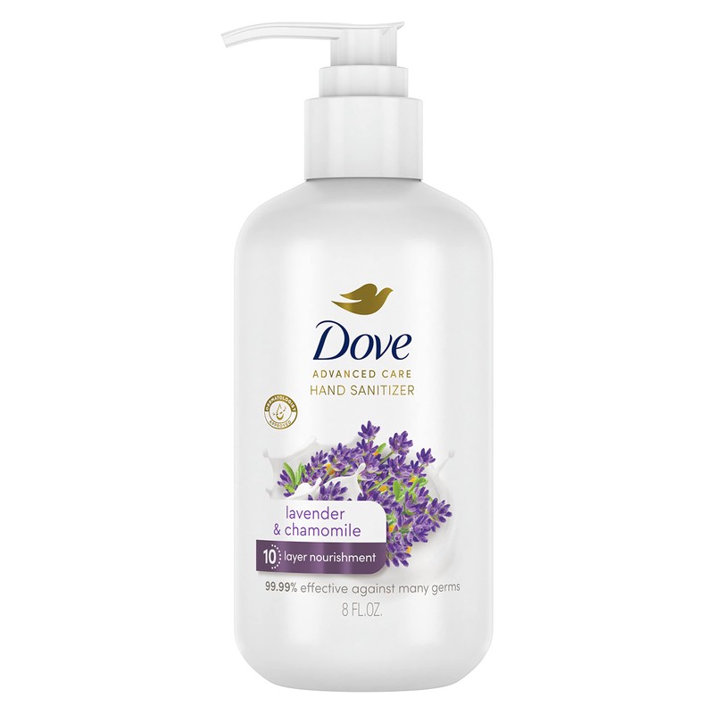 Dove Advanced Care Lavender & Chamomile Hand Sanitizer for Soft, Smooth Skin, 99.99% Effective Against Many Germs, 8 oz