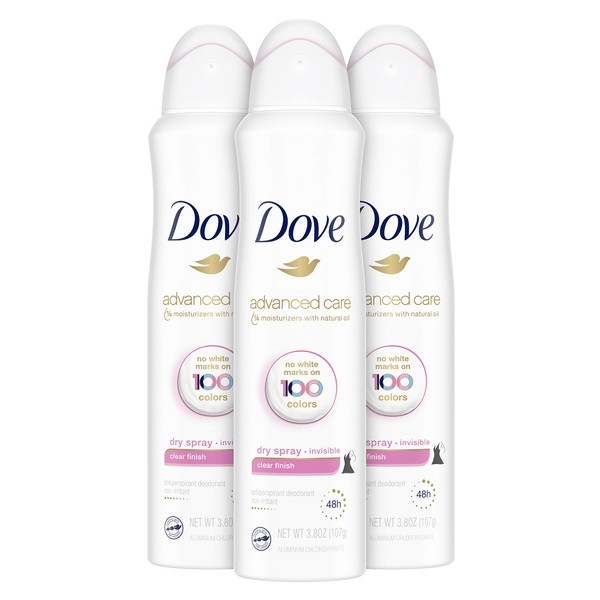 Dove Antiperspirant Deodorant Dry Spray No White Marks Clear Finish Invisible 48-Hour Sweat and Odor Protecting Deodorant for Women, 3.8 Ounce (Pack of 3)
