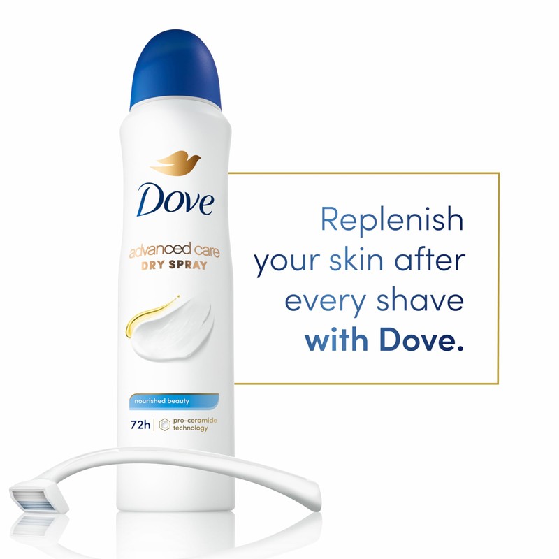 Dove Advanced Care Antiperspirant Deodorant Spray Nourished Beauty Antiperspirant deodorant to help repair skin’s barrier after shaving 72-hour antiperspirant deodorant for soft underarms 3.8 oz
