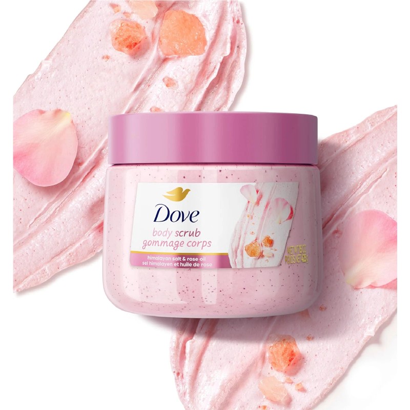 Dove Himalayan Salt & Rose Oil Body Scrub Deeply Nourishes for Smooth,15 oz