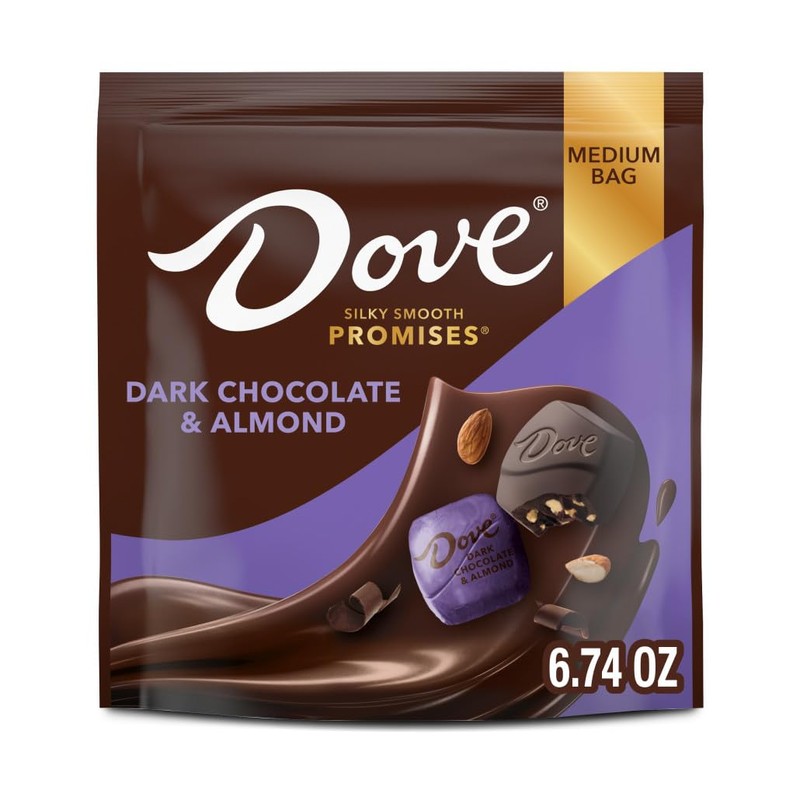 - DOVE PROMISES Almond and Dark Chocolate Candies are a delicious snack to slow down even the busiest afternoons