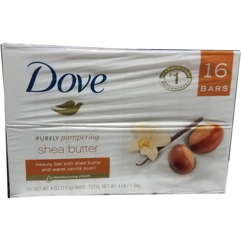 Dove Purely Pampering 16-4 OZ Shea Butter Bar Soaps, Warm Vanilla Scent, 64 OZ, White