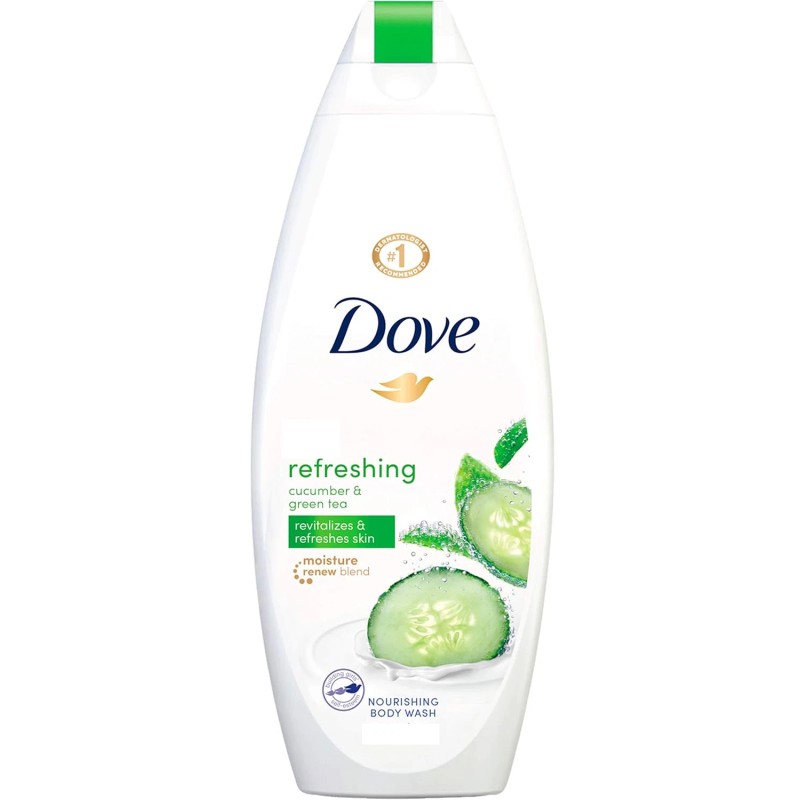 - REFRESH: Dove Refreshing Body Wash is full of skin-loving nourishers to revitalize your skin as cooling cucumber and green tea extracts satisfy your senses with every spa. We mean, shower