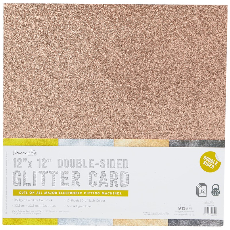 • no shed glitter card Choose from gold, silver, rose Gold and gunmetal. Each pack includes 12 sheets of quality 350gsm cardstock