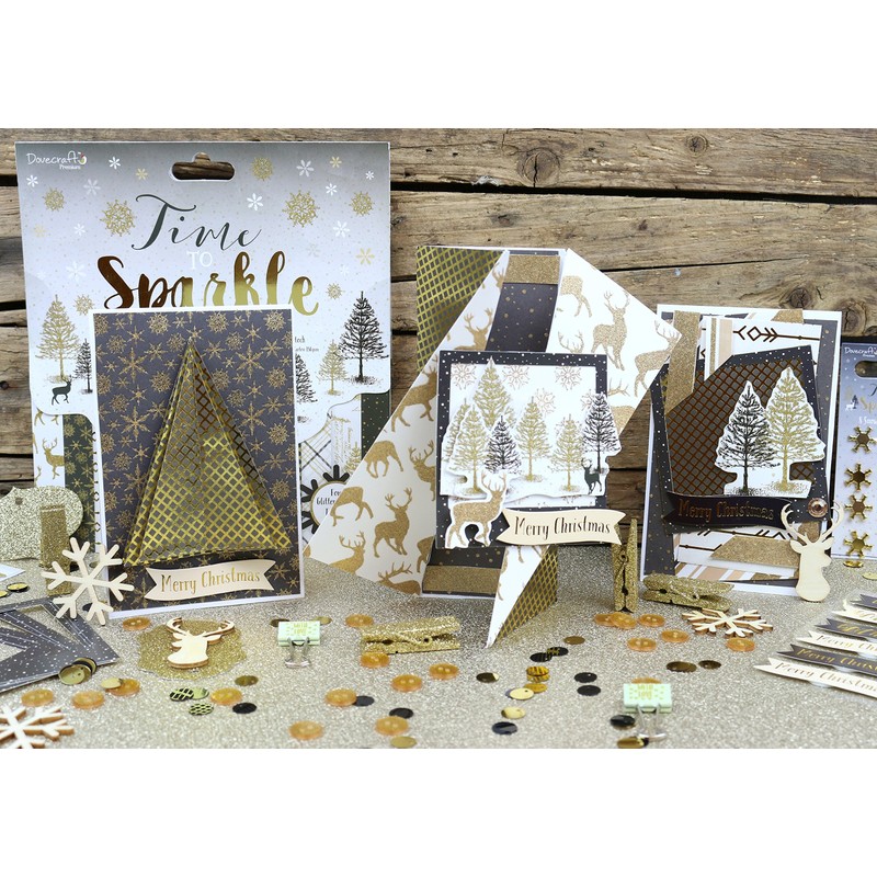 Welcome in the festive season with dovecraft’s luxurious papercraft collection, ‘time to sparkle’. contemporary and enchanting, the Majestic black and Gold papers designed by Katie pertiet feature illustrations of reindeer, snowflakes, and elegant stripes and polka dot patterns. To add to the stylish collection of papers, the Pads also feature a scintillating foil and glitter effect to make each Christmas craft Twinkle! coordinating with the pretty papers, the collection also includes washi tape, glitter enamel dots, clear stamps, cutting dies, wooden shapes, sequins glitter buttons, sentiment toppers and more. This wonderful selection will be a joy to craft with and will make each festive project glow