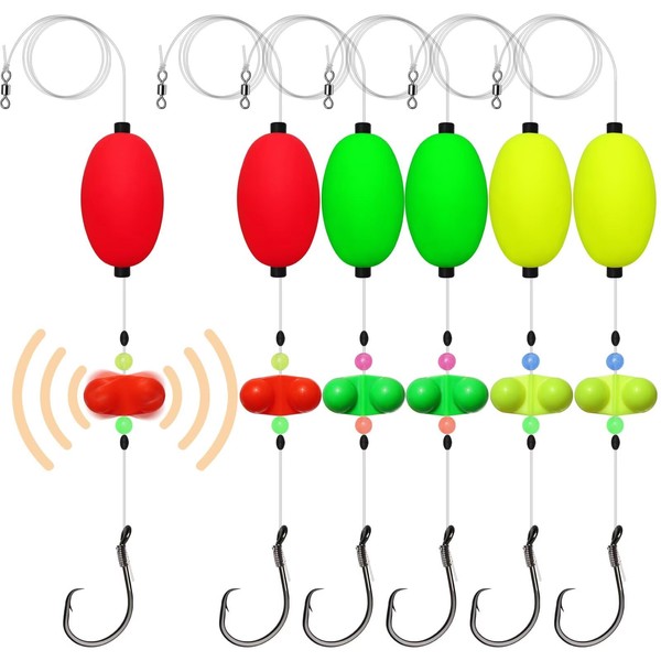 - 4 OPTIONS TO CHOOSE: A-Double Rattle+Propeller Rattle-6/0 Hook * 6PCS; A-Double Rattle+Propeller Rattle-8/0 Hook * 6PCS; B-Double Rattle-6/0 Hook * 6PCS; B-Double Rattle-8/0 Hook * 6PCS. Tension Test: 55LB. All Rigs Total Length:23in/584mm. Catfish Float Rig functions as floats and rattles and is a deadly combo to use for Catfish, Striper, Walleye, and many more predator fish. Trustworthy when the big one strikes!