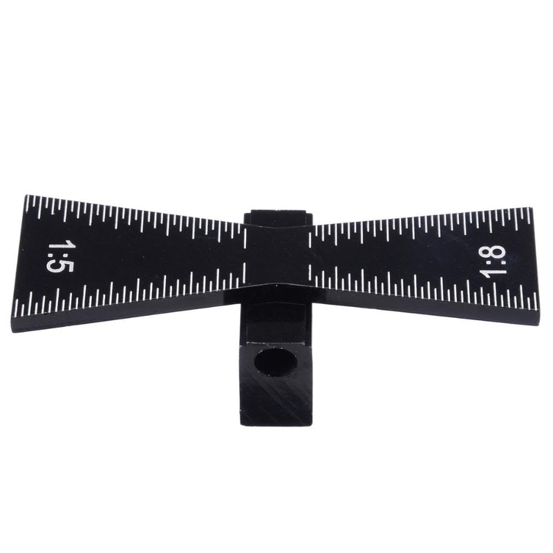 The marker is able to mark a dovetail 1 inch in length and has two ratios of width to height of 1:5 and 1:8. The 1.5 ratio is usually used in softwood and the 1:8.