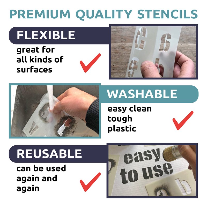 - Premium quality: Letter stencils made of high-quality 190 micron PET material, durable, flexible laser-cut.