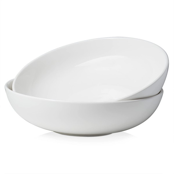 DOWAN 11.5" Large Serving Bowls, 3.2 Qt White Bowls, Serving Platter, Big Ceramic Bowls, Nesting Bowls, Centerpiece, Microwave & Dishwasher Safe, Set of 2