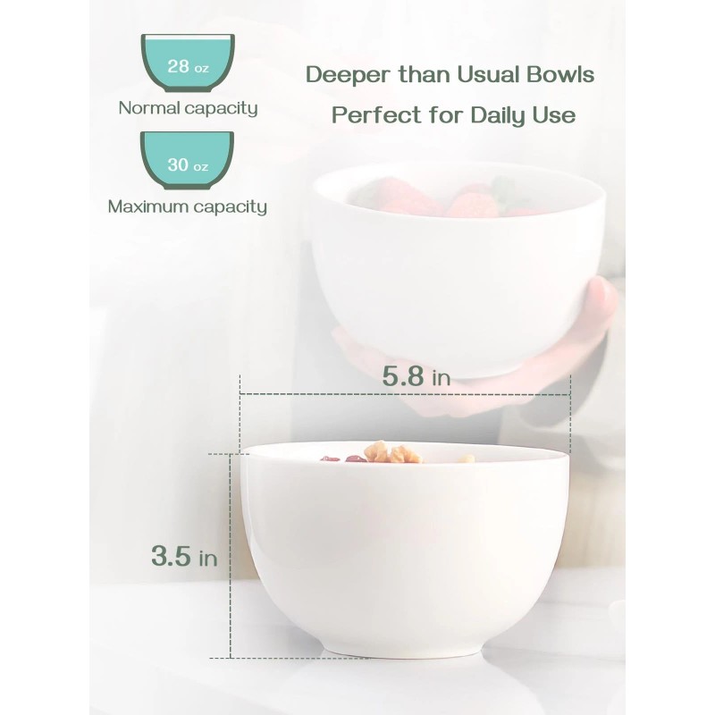 Dowan 5.8" Deep Soup Bowls & Cereal Bowls - 30 Ounces Large Bowls Set of 4 for Kitchen