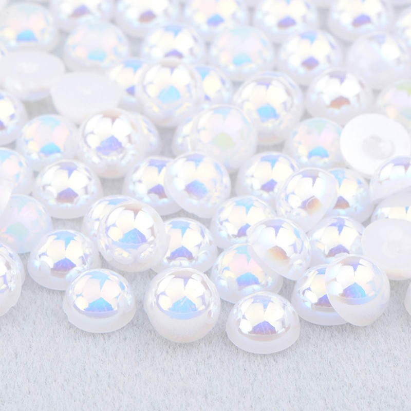 Dowarm 1000 Pieces Round Flatback Half Pearls, 4mm 6mm 8mm 10mm 12mm 14mm Half Pearls Beads for Crafts Jewelry, Loose Beads Gem (White AB)