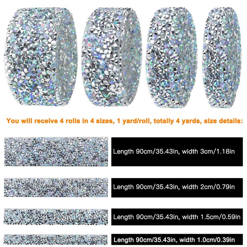 - ▲ Crystal Rhinestone Wrap Roll Sizes: You will receive totally 4 Yards in 4 width sizes: 1 Yard Roll in 1CM/0.39inch width, 1 Yard Roll in 1.5CM/0.59inch width, 1 Yard Roll in 2CM/0.79inch width, 1 Yard Roll in 3CM/1.18inch width, totally 4 Rolls in 4 width sizes.