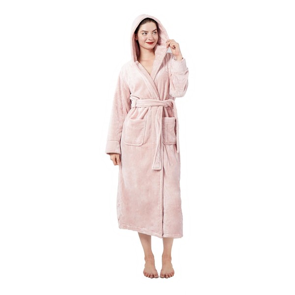 Dowesrobe Womens Fleece Hooded Fluffy Bathrobe Plush Long soft cozy Winner Warm fuzzy Spa Robe with deep pockets (Medium, Rose Taupe)