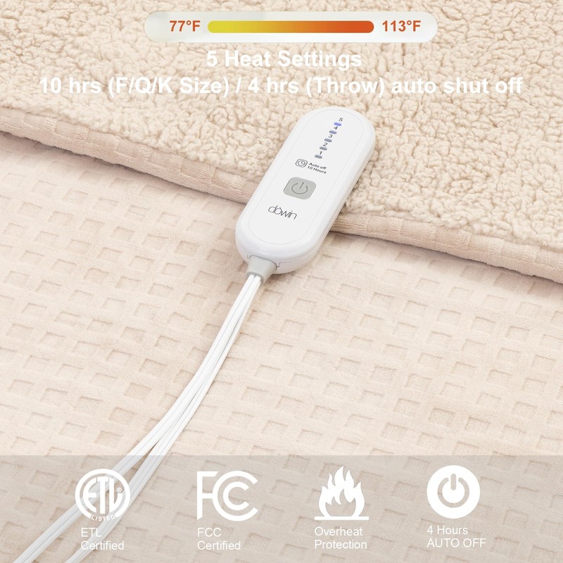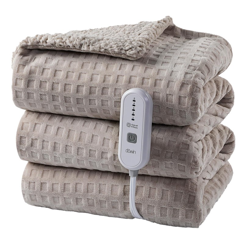 Dowin Heated Blanket Electric Blanket - Throw Size Waffle Fleece Heating Warming Blankets with Auto Shut Off for Couch Office Chair Bed Adults Fuzzy Cozy Machine Washable 50x60 Khaki