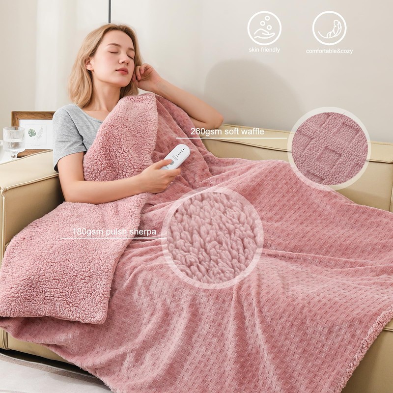 - Ultra-Soft Thick Fabric - Crafted with a luxurious blend of ultra-soft 260gsm plush waffle on one side and 180gsm warmer fleece on the other, this heated throw blanket is perfect for snuggling up on the couch / sofa or adding an extra layer of warmth to your bed.