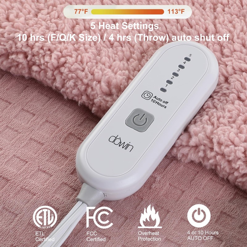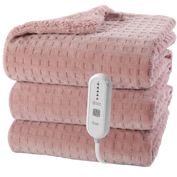 Dowin Pink Heated Blanket Electric Throw Waffle Fleece Heating Warming Blankets with Auto Shut Off for Couch Office Chair Bed Adults Fuzzy Cozy Machine Washable 50x60