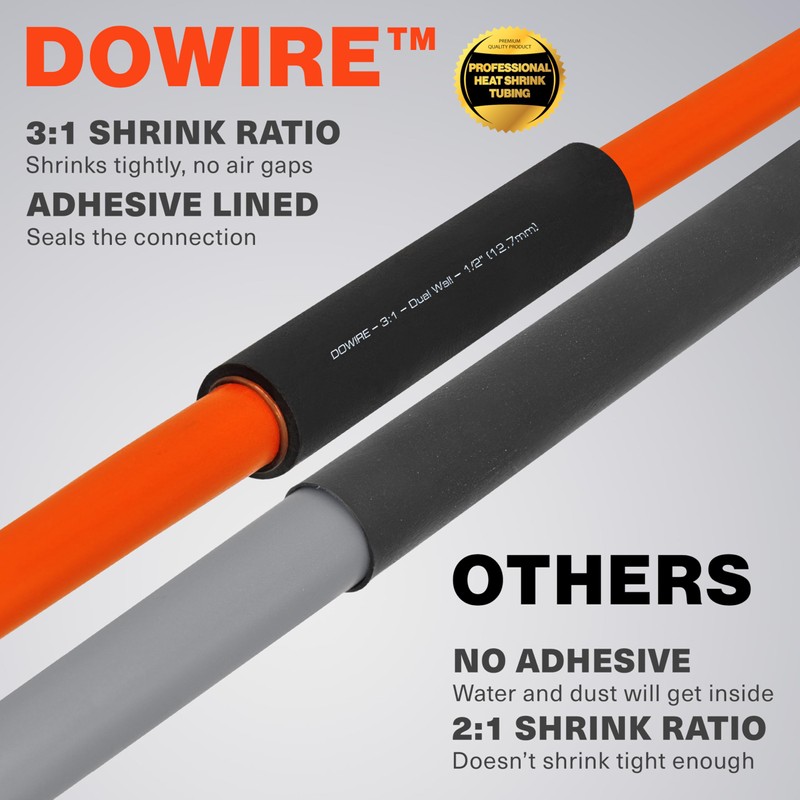 - SUPERIOR 3:1 SHRINK RATIO — Offers a tighter fit around wires and connectors than standard 2:1 heat shrink tube, ensuring a more secure, waterproof insulation without the need to remove existing connectors.