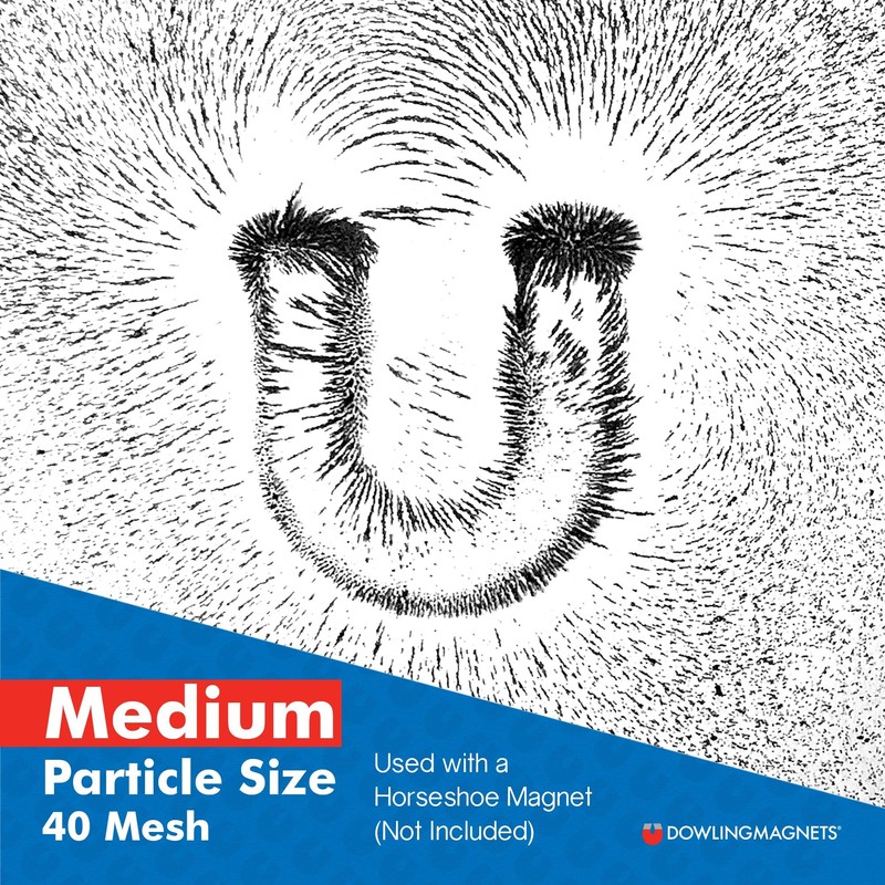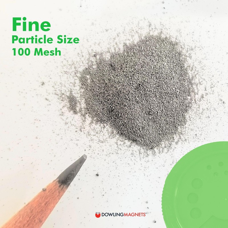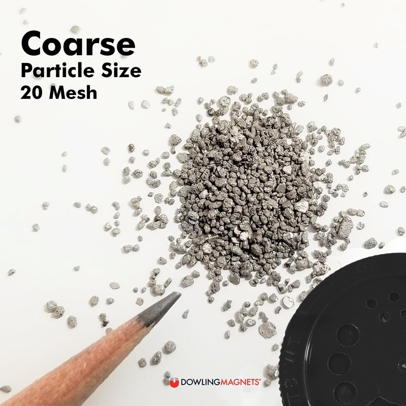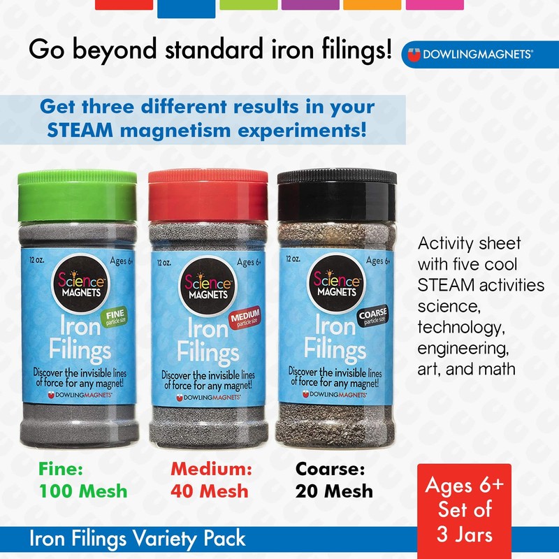 - Go beyond standard iron filings! Get three different results in your STEAM magnetism experiments! Includes three jars, each with a different particle size of iron filings: FINE/100 mesh size, MEDIUM/40 mesh size, and COARSE/20 mesh size. (Mesh size refers to the common size of the mesh of a sieve. Sieve not included. )