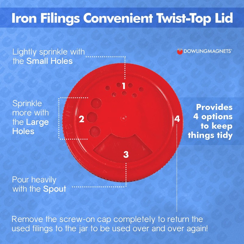 - Pack is three jars (12 oz each of 100% pure iron) plus an activity sheet with five cool STEAM activities (science, technology, engineering, art, and math). Magnets not included.