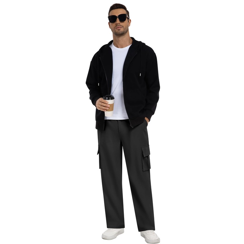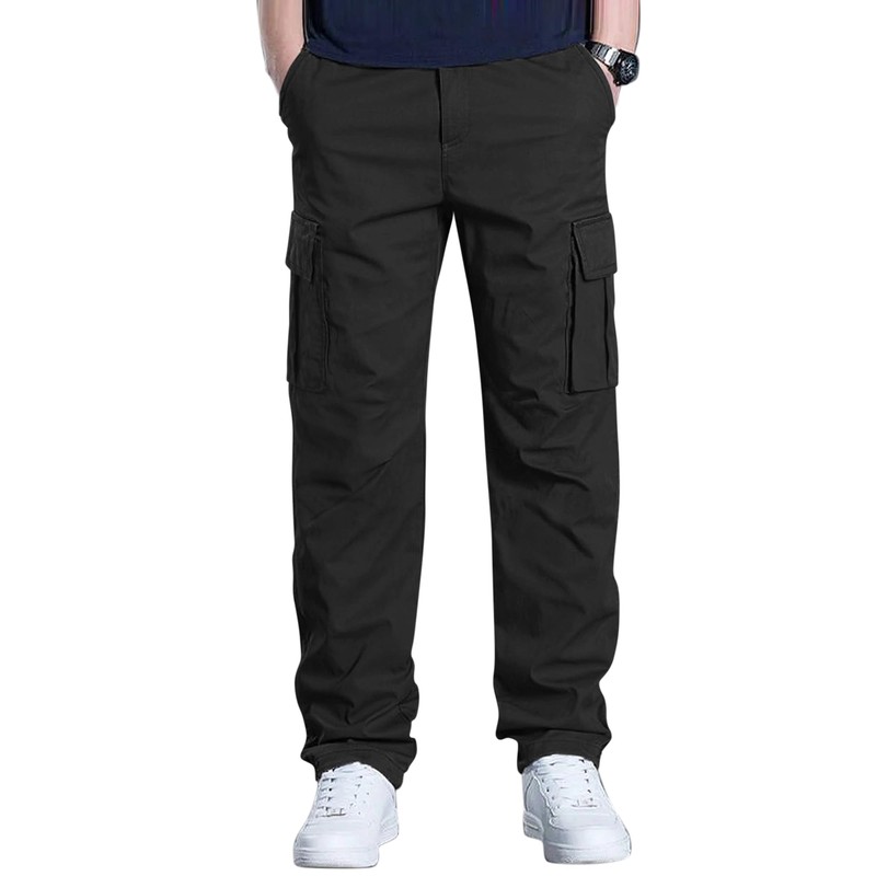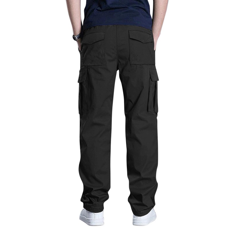 DOWMQ Men's Cargo Pants Casual Straight Leg Sweatpants Drawstring Elastic Waist Men Pants with 6 Pockets Hiking Pants Black,L