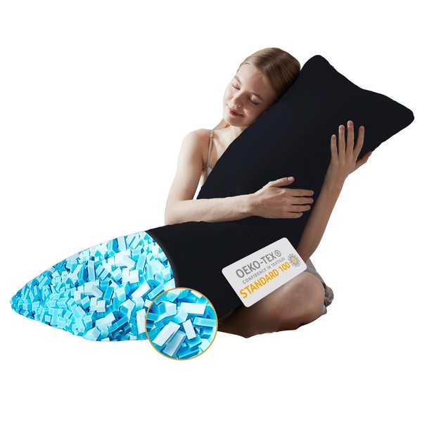 DOWNCOOL Memory Foam Body Pillow Insert with Fiber Cover - Large Full Body Pillows for Adults - Soft Long Bed Pillows for Side Sleepers - 20x54 inch (Black, with Cover)