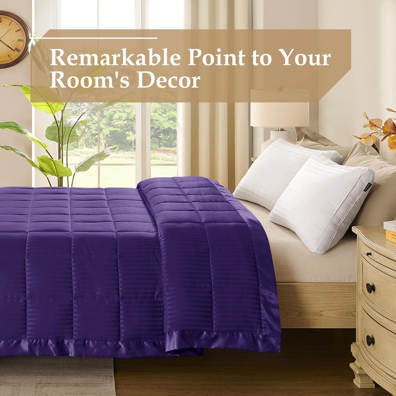 - Supreme Comfort: Our blanket featuring premium 135 GSM down alternative fill that stays fluffy and evenly distributed without clumping or odors. The elegant stripe jacquard design is finished with 3-inch satin binding for a luxurious drape, perfect for stylish bedding