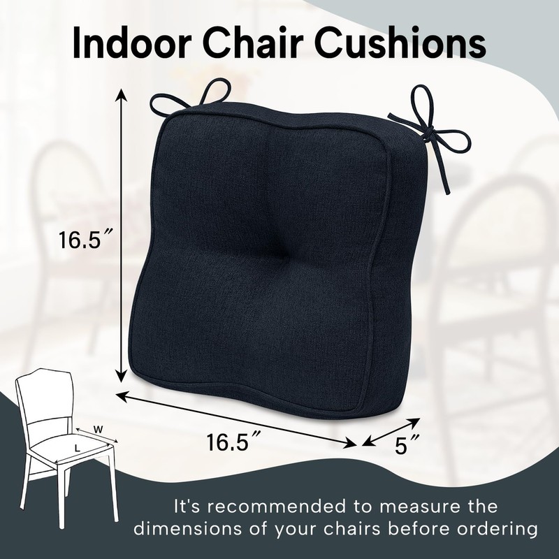 - Size and Package: 2 pack 16.5" X 16.5" X 5" navy dining room chair cushions are vacuum packed. A warm tip: patting the chair cushion can scatter the filling and make it into good shape before use