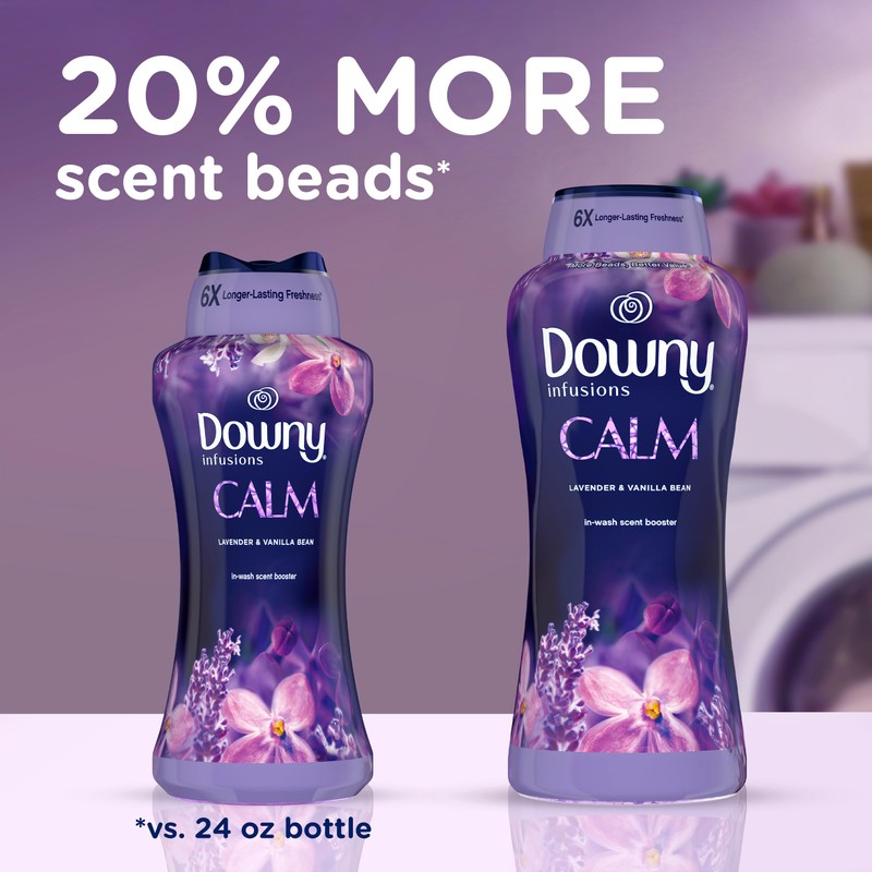 Downy Infusions CALM In-Wash Scent Boosters C the secret to turning ordinary laundry into an extraordinary sensory experience! Discover the power of lavender and vanilla, combined to create a calming scent that will transport you to a tranquil oasis with every wash. Enjoy 12 weeks of long-lasting scents*, Downy Infusions In-Wash Scent Boosters go beyond the wash cycle, offering you a remarkable fragrance that lasts from wash until wear. Say goodbye to fading scents and hello to 12 weeks of continuous freshness! With Downy Infusions CALM, your laundry will be infused with 6X more tranquil freshness*, ensuring that every item is enveloped in the calming scent of lavender and vanilla. Our In-Wash Scent Boosters infuse your fabrics with a burst of long-lasting fragrance, keeping your laundry smelling fresh and inviting throughout the day. Downy Infusions In-Wash Scent Boosters not only infuse your laundry with captivating scents but also protect your laundry from lingering odors and add soothing scents in every wash. Toss, wash, WOW! With Downy Infusions In-Wash Scent Boosters, doing laundry has never been more exciting. Simply toss the scent booster beads into the washing machine, let it work its magic during the wash cycle, and prepare to be amazed by the incredible freshness that awaits you. Elevate your laundry routine with Downy Infusions In-Wash Scent Boosters. Immerse yourself in the soothing scent of lavender and vanilla and let your clothes make a lasting impression. Upgrade your laundry routine with Downy Infusions Dryer Sheets and Downy Infusions Fabric Softener today and discover a world of captivating scents and long-lasting freshness. Transform your everyday laundry into a sensory delight and enjoy the confidence of stepping out in clothes that smell as incredible as they look. *Vs. Leading liquid detergent from wash until wear.