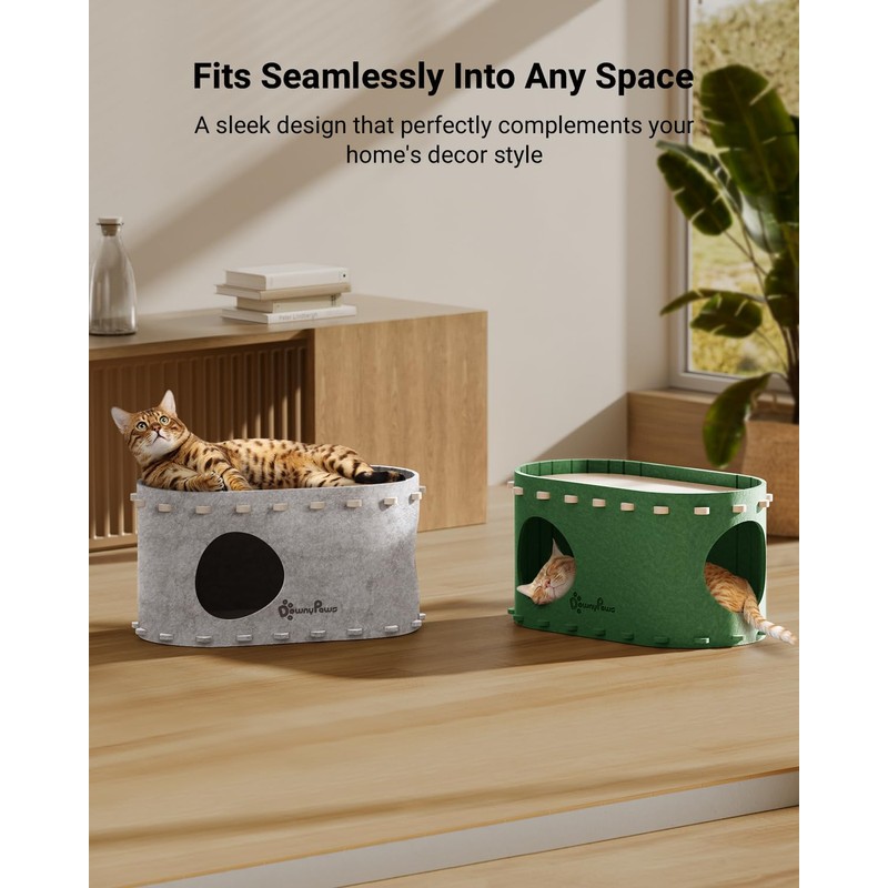 • Long-lasting and Claw-Resistant: Crafted with Hard-wearing felt, PeekaPurr Cat Hideaway withstands tough swipes and ensures your cat's nails and paws stay protected during relaxed scratching sessions. Its unique texture, a perfect blend of softness and firmness, satisfies cats' kneading and scratching instincts, providing a gratifying tactile experience