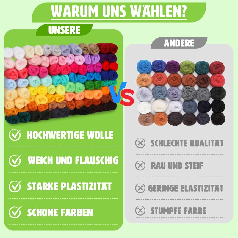 • High Quality Materials Our needle felting wool is made of high quality fiber wool, soft and fluffy, and has good plasticity. It can be easily and quickly shaped into any desired shape or quickly torn off for felting. All wool types are suitable for felting beginners.