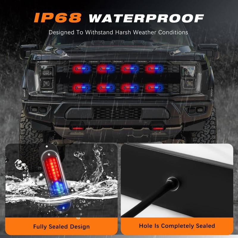 - 【Super Visibility】: 8Pcs sync feature emergency strobe grille light are composed of 8 single row 12 high-quality LED chips, which can emit bright illumination even during the day and night, ensuring your driving safety.